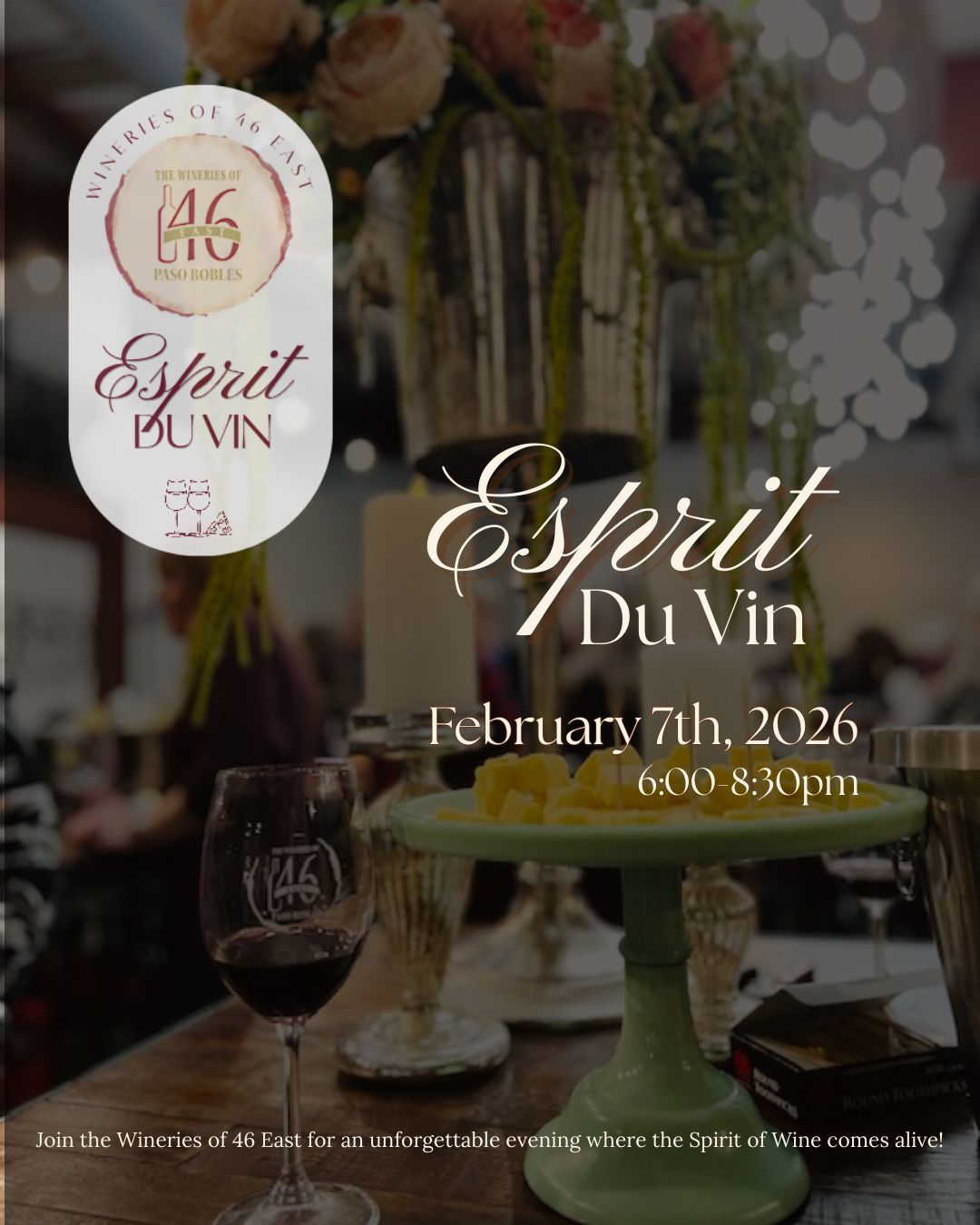 Join us in celebrating our 23rd Annual Esprit du Vin, the “Spirit of Wine” where all of our 46 East wineries will gather under one roof for an exciting night of delicious wine and cheese pairings, culinary delights and live music.